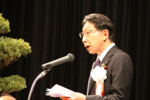 ご来賓の皆様を代表して、長崎幸太郎山梨県知事からお祝いのお言葉をいただきました。