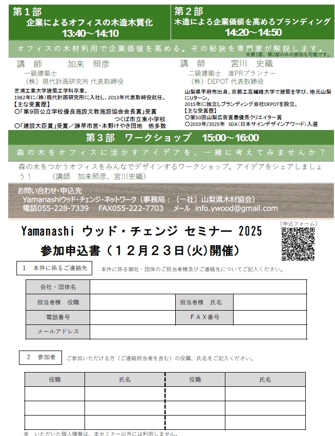(7.12.23)「Yamanashiウッド・チェンジ・セミナー2025」のご案内(Yamanashiウッドチェンジネットワーク)